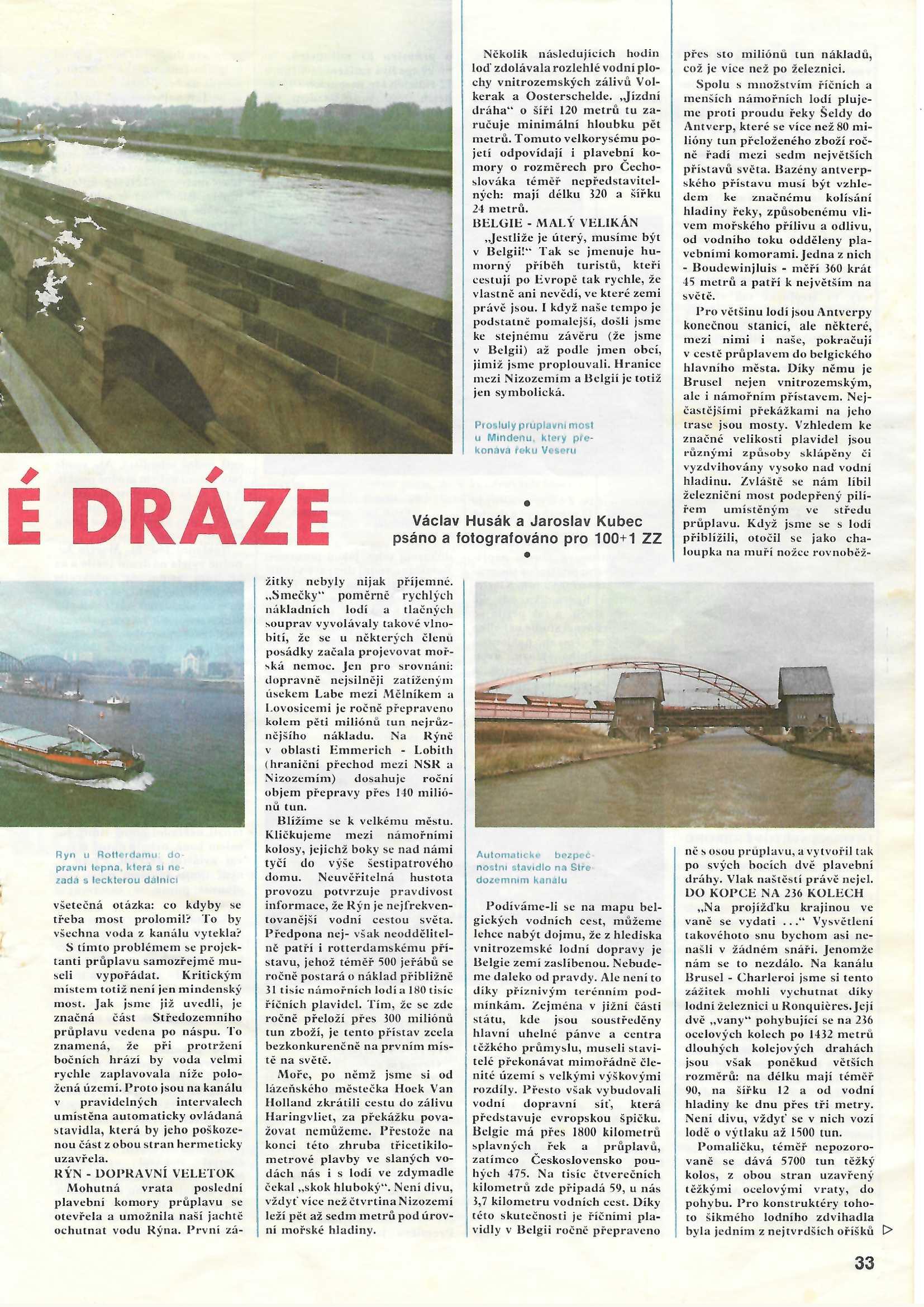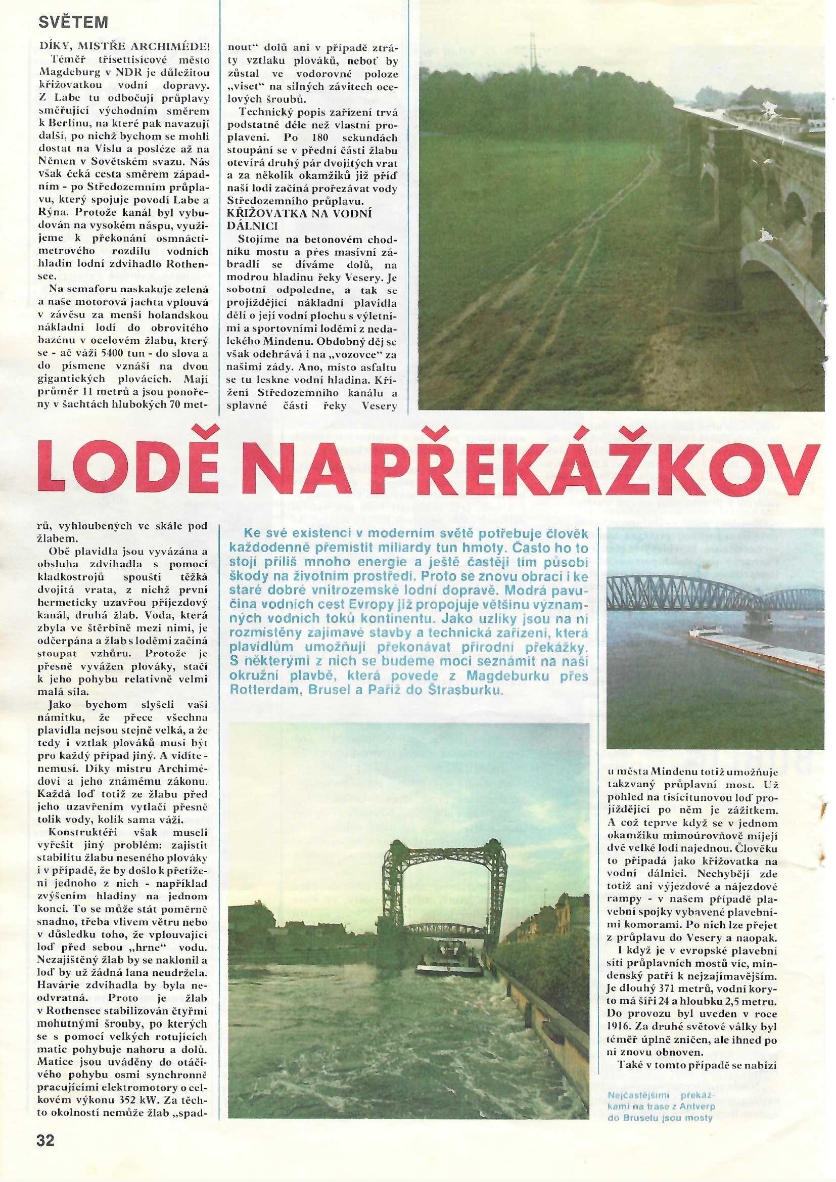 V posádce devíti mužů byli, kromě kapitána a strojníka, ještě novinář. Jako navigátor pracovník výzkumného ústavu dopravy, zdravotník, kameraman a režizér krátkého filmu Praha a dva další členové. Po silnici byla loď dopravena do Mělníka, tam spuštěna na vodu. Pak plula do Prahy kde cesta oficiálně započala prvního září. Po Labi jsme dopluli a zdymadly vystoupali na středozemní kanál poblíž Magdeburgu. V Německu jsme po středozemním kanále dopluli až na Rýn. Po proudu Rýna jsme dopluli do Rotterdamu. Dále přes Amsterdam, Antverpy, Brusel a po Seině do Paříže. Tam jsme se zdrželi asi týden. Po kanálech přes Remeš a řeky Marnu a Moselu do Štrasburku. Po proudu Rýna jsme opět vpluli na středozemní kanál. V Magdeburgu část posádky vystoupila. Kapitán se strojníkem přes Berlín a Havola kanál dopluli na řeku Odru. Tam nastal problém. Nepustili nás proti proudu, ale museli jsme po proudu až do Štětína. Po pár dnech se vše vyřídilo a mohli jsme zamířit proti proudu domů. Vlastním pohonem a ve vleku za tlačným remorkérem jsme dopluli do posledního přístavu na Odře do Kožle. Tam loď zůstala zakotvená až do jara příštího roku. Po silnici byla odvezena zpět do Ostravy.